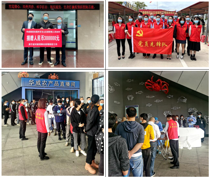华威西营里农产品交易中心占地总面积190亩,是一个高峰时年交易量达百亿元的福州市区内重要的农产品采购流通节点和保供单位,市场疫情防控得力与否直接关乎到老百姓的“菜篮子”。为确保市民基本生活物资供应不受影响,福建华威集团党委充分发挥党建引领作用,号召党员积极行动起来,从实际出发,落实疫情防控措施。一是在户外LED、市场出入口等张贴防疫知识宣传海报,督促商户遵守防疫规定,做好个人防护,确保防控措施执行到位;二是严格查验每位进场人员健康码及24小时核酸检测报告,保证流动人员信息可追溯;三是加强市场巡查,引导商户落实防疫规定,维持现场安全秩序。同时华威集团积极履行社会责任,向仓山区建新镇人民政府捐赠防疫资金30万元和一批抗疫物资,助力福州早日打赢疫情防控攻坚战。
