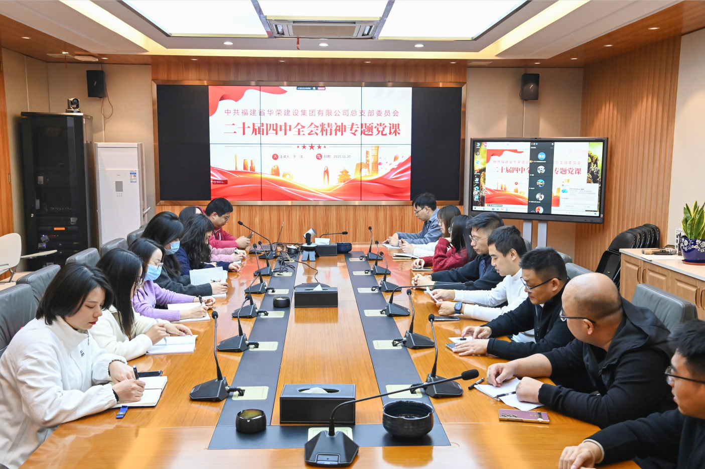 为深入学习贯彻党的二十届四中全会精神,11月20日下午,华荣党总支组织开展二十届四中全会精神专题党课,华荣支部书记于洋带头领学,集团全体党员、入党积极分子通过线上线下相结合的方式参与学习。