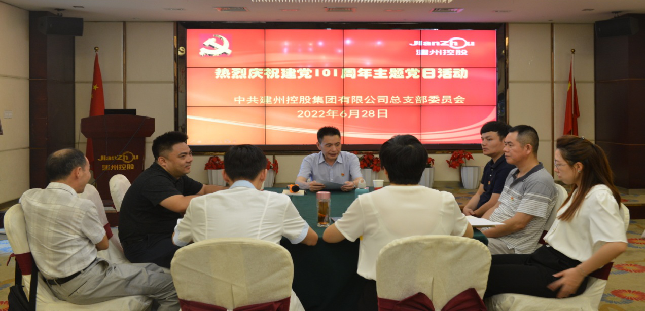 6月28日下午,建州控股集团党总支组织党员开展庆祝建党101周年“红色生日”主题党日活动。会议由集团董事长、党总支书记杨仁慧主持;为便于党员参加党日活动,在建瓯地区所在支部设立分会场视屏同步举行。