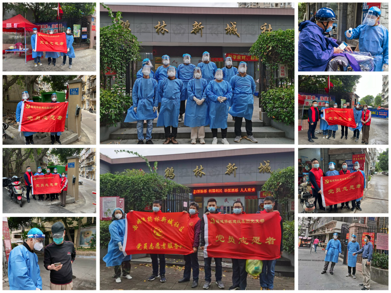 福建华航建设集团党支部党员志愿者自10月29日以来,为积极响应市住建局号召,共组织36名志愿者(其中党员14名),全力守护群众生命健康安全,主动扛起社会责任,下沉岳峰镇鹤林新城社区,为福东小区、景秀园、东站新村、众恒花园等居民提供防控疫情服务。