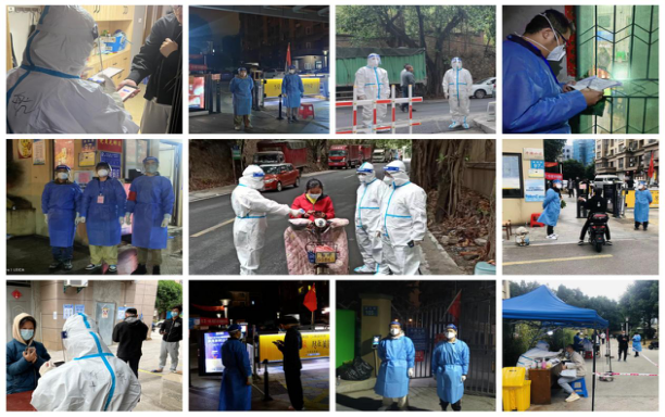 福建华航建设集团志愿者经历了第一阶段(10.30-11.3)增援岳峰镇无疫小区创建工作后,坚决贯彻落实省市疫控指挥部新一轮的工作部署,发扬连续作战精神,立即投入第二阶段(11.4-11.7)为早日实现社会面清零的“三班倒”攻坚战。以福州市新型冠状病毒感染肺炎疫情防控工作应急指挥部 “关于贯彻落实《关于加强一线力量坚决打赢社会面清零攻坚战的若干措施》的实施方案”为指导思想和统一部署,组织志愿者下沉岳峰镇鹤林新城社区的众恒花园、东站新村增援抗疫。从华航“小蓝”到华航“小白”的转换过程,意味着增援工作强度和肩负的责任更加重大。由于以上小区外来流动人口稠密,抵触情绪的居民多,防控难度大,困难面前,志愿者们不分白天黑夜,24小时轮流把守,服从安排,明确任务,坚守岗位,尽职尽责,严格查验进入小区人员的健康码、核酸检测、体温测试等。对体温超标、红码人员一律拒绝进入小区;对小区内红码人员配合社区安排上门组织核酸检测;对核酸检测超过48小时的小区居民劝导其积极配合参加核酸检测;对小区入口处设有外卖、快递配送寄存点加强引导,严禁外卖人员进入小区。同时,协助社区摸清辖区内居住人员状况,登记造册,并及时更新6类台账(包括:小区核酸不积极人员登记表、小区老弱病残孕等特殊人群情况表、小区密接、次密接和混阳人员情况表、小区核酸检测阳性人员情况表、小区外来人员登记表、小区相关工作人员信息表)。