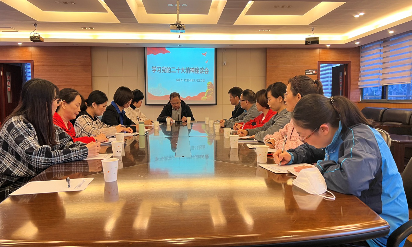 为深入学习宣传贯彻党的二十大精神,激发党员、公司骨干工作积极性、主动性、创造性。福建龙川集团党支部于2022年12月5日下午15:00在集团四楼组织召开学习二十大会议精神座谈会。会议由党支部书记刘心平主持,集团副总翁秀华、集团工会主席梁爱玲、左海海底世界副总张添雄、在榕党员、入党积极分子以及集团、海底世界骨干共13人参加会议。