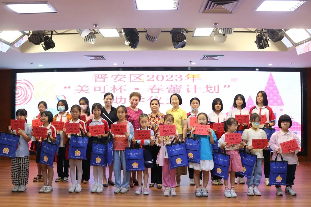 5月30日下午,福州美可食品有限公司携手福建省妇儿发展基金会、晋安区妇联、晋安区教育系统妇联在晋安区妇女儿童活动中心举办晋安区2023年“美可杯春蕾计划”助学仪式。福州美可食品有限公司董事长、党支部书记潘平可为20名“春蕾”女童资助每人1000元的助学金和暖心鼓励,总计2万元,在她们求学的道路上给予诚挚的关怀和帮助。