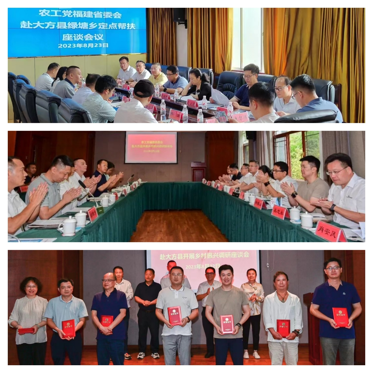 8月22日-23日,农工党福建省委会专职副主委杨琳,农工党福建省委会常委、福州市委员会委员、华荣集团总裁卢健,集团党总支书记、常务副总裁林莹以及农工党福建省委会医疗、生工专家、爱心企业家、漆器大师共赴贵州省大方县开展精准对接、帮扶产业、助力乡村振兴活动。农工党贵州省委会副主委、省审计厅政府投资审计中心主任张威,大方县副县长周登印、胡韬,县人大常委会副主任邱林等参加本次活动。